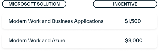 For a limited time, every net new end customer with a minimum of $500 in total deal size, which includes the combination of Microsoft Cloud solutions purchased for the same end-user customer within the promo period, receive up to a maximum of $3,000 per reseller for subscriptions purchased through TD SYNNEX as a credit to your account.