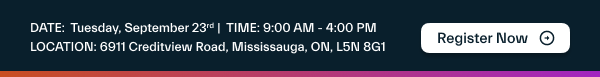 Date: Tuesday, September 23rd | Time: 9:00 AM - 4:00 PM EDT Location: 6911 Creditview Road, Mississauga, Ontario, L5N 8G1